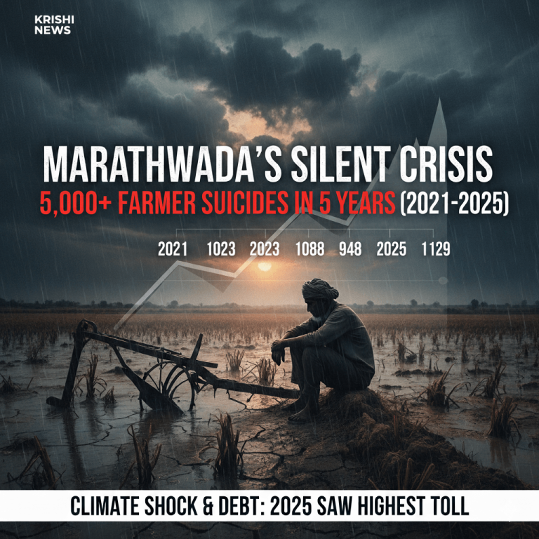 A recent official report has revealed a deeply worrying trend in Maharashtra’s Marathwada region. Over the past five years, from 2021 to 2025, more than 5,000 farmers have died by suicide. The year 2025 saw the highest number of these tragic deaths, with 1,129 farmers taking their own lives. Marathwada is made up of eight…