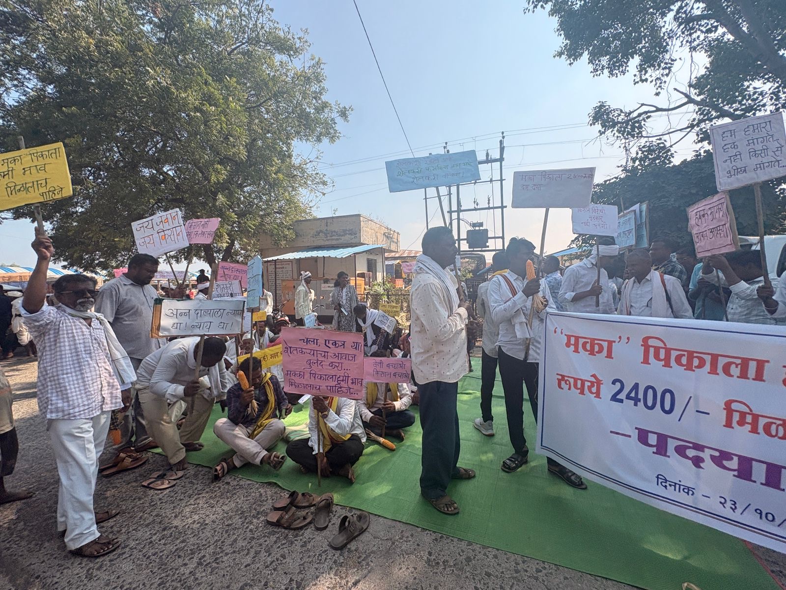 Maize farmers from the remote Melghat region staged a protest at Achalpur APMC demanding procurement at Minimum Support Price, as their produce fetches only ₹800-₹1,200 per quintal against the government-declared MSP of ₹2,400.